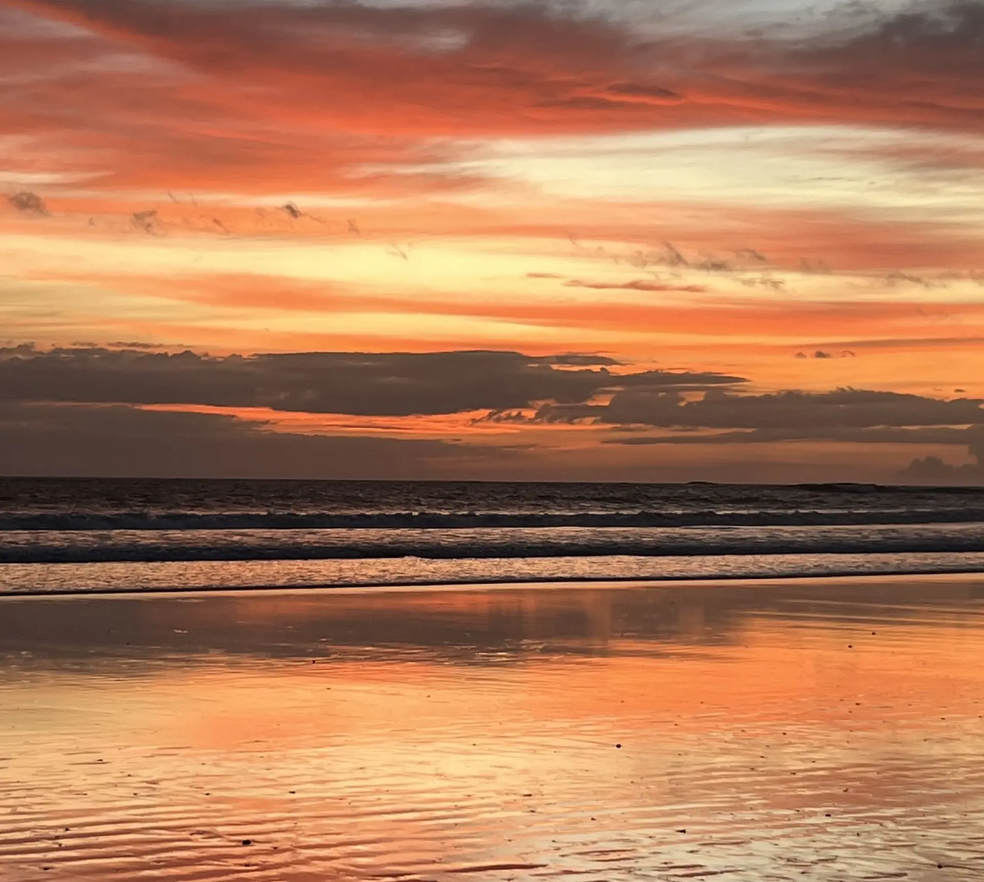 A quiet barefoot walk brings you to endless sand and the celebrated surf breaks of Playa Grande